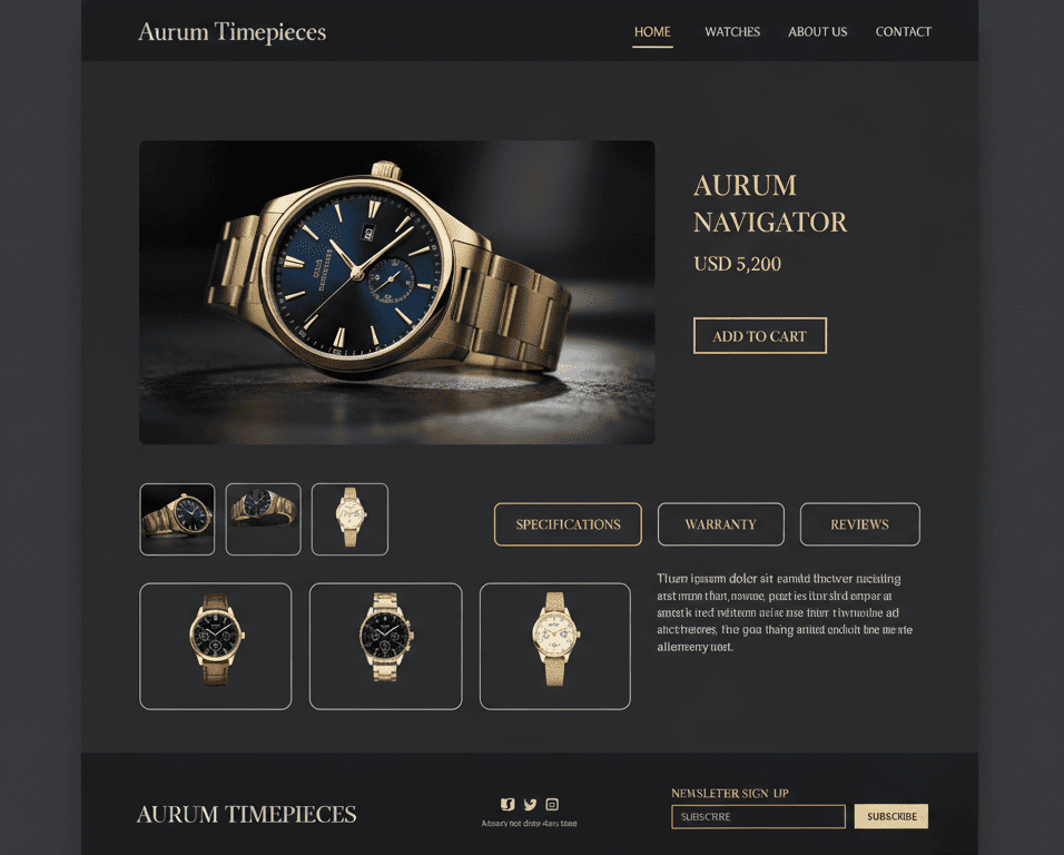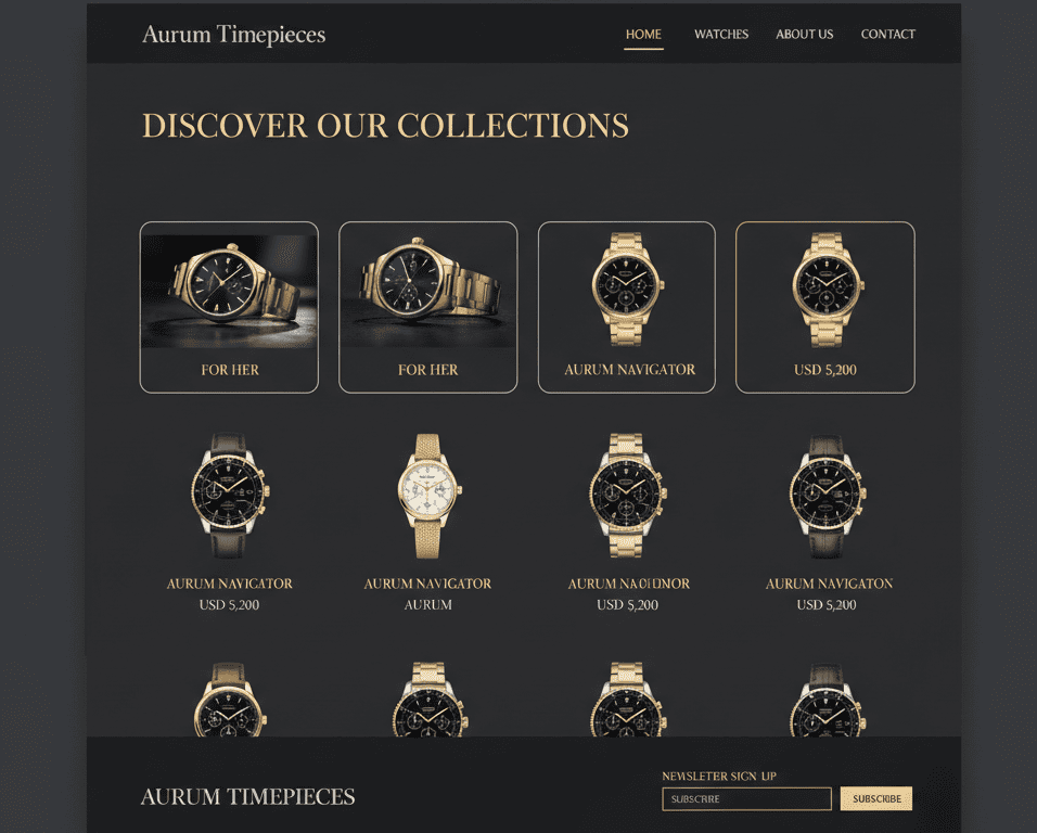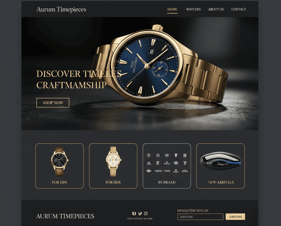 At iiTechnology, we take pride in developing high-quality eCommerce solutions that combine design, performance, and scalability. Our recent project, Aurum Timepieces, is a modern online store built to deliver a seamless shopping experience across all devices.
