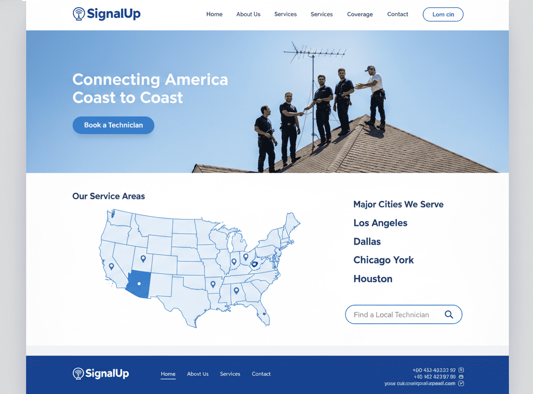 The custom WordPress website was crafted with a focus on clarity, local SEO, and service conversions. Featuring dynamic service sections, interactive coverage maps, and optimized calls-to-action, SignalUp represents a modern web solution tailored to attract and engage customers across the U.S.